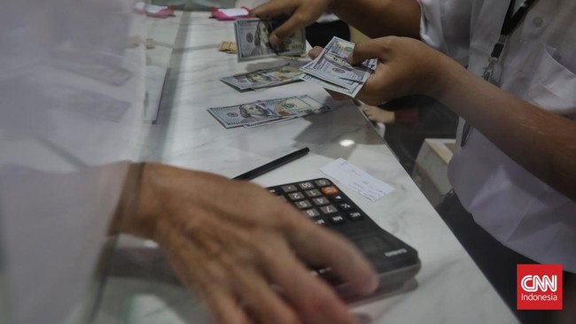 Jakarta, CNN Indonesia -- Nilai tukar rupiah dibuka di posisi Rp15.953 per dolar AS di perdagangan pasar spot pada Senin (12/8) pagi. Mata uang Garuda turun 28 poin atau minus 0,18 persen dibandingkan penutupan di hari sebelumnya.Mata uang Asia lain juga hampir semuanya jatuh. Baht Thailand dan dolar Singapura merosot 0,01 persen; dolar Hong Kong minus 0,03 persen; peso Filipina jatuh 0,06 persen; yuan China amblas 0,08 persen; won Korea Selatan minus 0,12 persen; yen Jepang ambruk 0,24 persen; dan ringgit Malaysia anjlok 0,27 persen.Sedangkan penguatan hanya dirasakan rupee India yang naik tipis 0,01 persen.